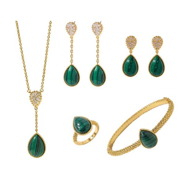 Exquisite hot-selling jewelry retro natural agate shell malachite four-piece suit light retro street photography