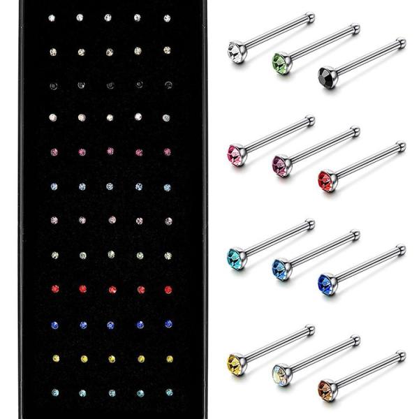 60 Pcs Stainless Nose Rings Piercing Pin Body Jewelry 1.8mm