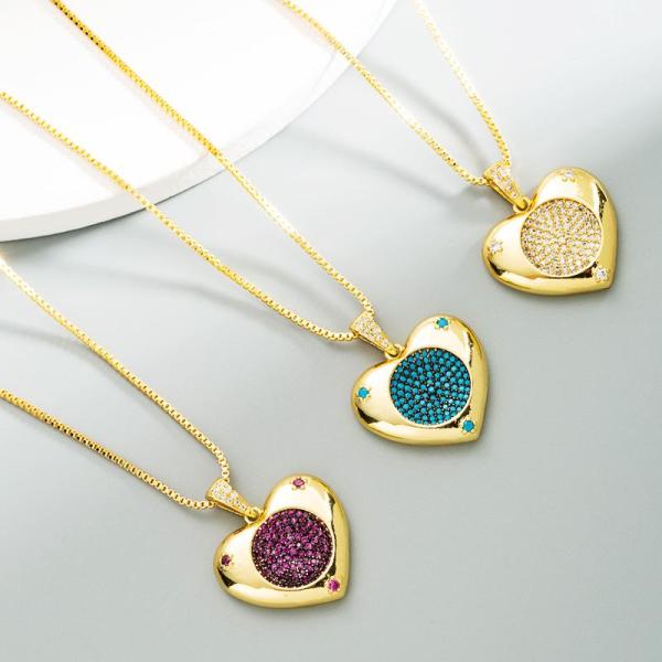 European and American design heart of the ocean round pendant copper gold-plated fashion heart-shaped chain
