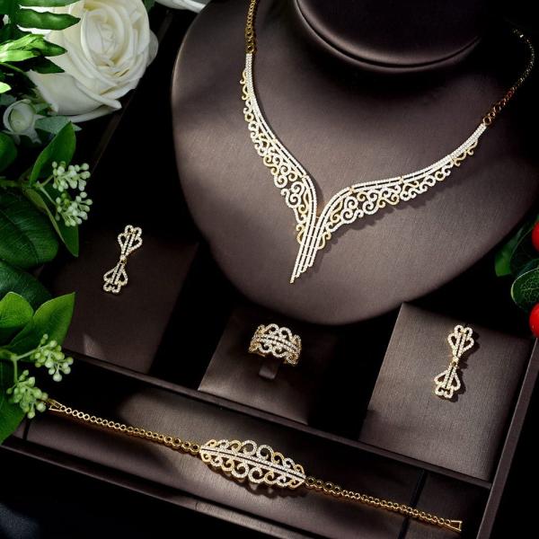 Ladies sparkling micro- 5A earrings bracelet ring dinner four-piece jewelry