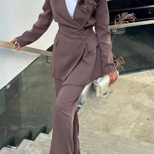 (Top and pants to be purchased separately) Brown casual letter sweatshirt set
