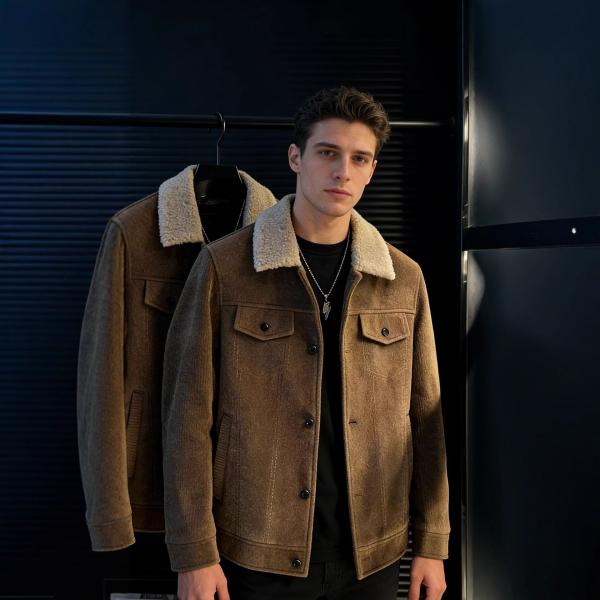 European and American men's denim-style jacket with lamb wool, cold-resistant and warm