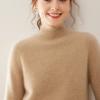 100% Pure Cashmere Women's Sweater, Half Turtleneck, Thick, Loose, Slimming, Soft-to-Skin Knit Base Sweater
